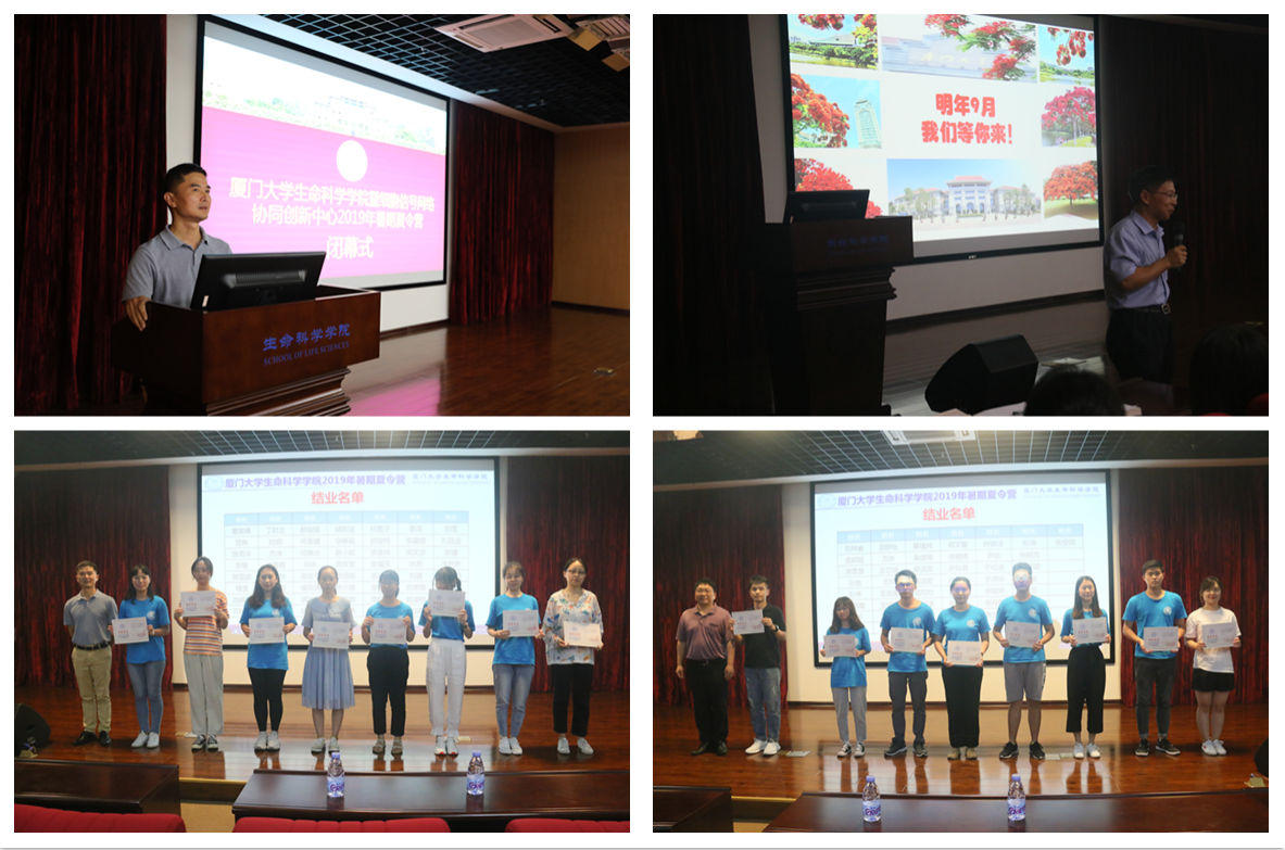 7月5日,学院组织教师对营员进行综合面试考核,并在下午举行了本届夏令营闭幕活动,活动由李勤喜副院长主持,学院党委书记张明智出席闭幕式并致闭幕辞。张明智书记对所有营员的到来再次表示了欢迎,对学院一流学科建设和研究生培养硕果等做了进一步介绍,寄语和期待营员们加入厦大生科院大家庭,共同迎接厦门大学百年华诞、一起见证生科院百年院庆。张明智书记、李勤喜副院长及生物医学系主任俞春东教授共同为营员们颁发结业证书。最后,李勤喜副院长做夏令营活动总结发言,并对所有与会师生致以深深的谢意,鼓励和欢迎通过考核的营员选择厦大,加入生科。