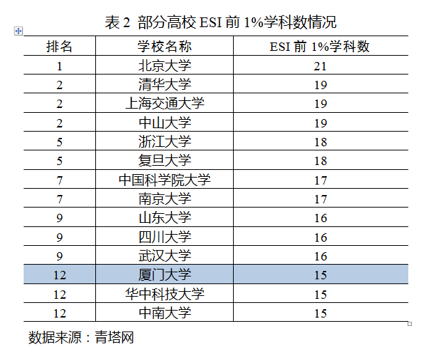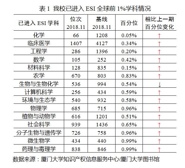 根据科睿唯安ESI数据库(Essential Science Indicators,简称ESI)2018年11月16日公布的最新数据显示,厦门大学微生物学、药理与毒理学2个ESI学科首次进入全球前1%。目前,我校共有15个ESI学科进入全球前1%,总数在中国大陆高校中并列第12位。分别是:化学、材料科学、工程学、临床医学、植物与动物学、环境与生态学、生物与生物化学、物理学、数学、农学、社会科学、计算机科学、分子生物与遗传学、微生物学、药理与毒理学,其中化学进入ESI全球前1‰。
