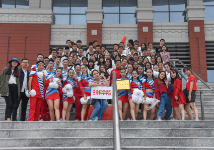 在欣赏了其他两个院的精彩表现后,我院啦啦操队员在观众们的欢呼中进入了比赛场地。伴着鼓声,观众们呼喊出了“生命不息,运动不止,生科生科,生命如歌”的口号,这振奋人心的口号让我们的啦啦操队员们抖擞了精神,开始了精彩的表演。