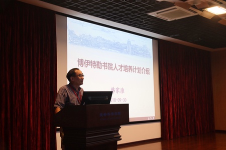 伴随着全体师生合唱国歌,典礼拉开了序幕。韩家淮教授从书院的创办初衷、书院普适培养计划、书院拔尖培养计划和书院的愿景四个方面向同学们介绍了博伊特勒书院概况。博伊特勒书院通过两套培养体系,一方面提升低年级同学的人文素养和综合素质,另一方面为高年级同学提供国际化的一流师资和更优越的学习、科研条件,让同学们不出国门就能享受到国外名校的资源,力争将书院人培养成为生命医学领域国际大师级后备人才。韩家淮教授还寄语新生们:“一定时间内,你干的事越多,你的生命就越长。希望同学们,珍惜自己的机会,珍惜自己的时间,珍惜自己的一生。
