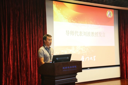 生命科学学院刘波教授、2015级本科生李学磊、2018级新生王一分别作为导师代表、学生代表和新生代表发言。刘波教授说到,18年前,他也像在坐的各位同学一样,离开了父母的庇护,踏入了南方之强厦门大学的校园,并迅速被丰富多彩的大学生活所吸引。但不同的是,当时还没有博伊特勒书院这个高水平的学习平台。希望同学们能够尽快提升自身的适应能力,提高学习在大学期间的比重,珍惜免费但又最为珍贵的时间。李学磊同学则以“干一行,爱一行”为主题发言。他说:“三年书院生活带给他的除了知识的增长、视野的开阔、师生的友谊,还有健康的身体。这个世界上有‘爱一行,干一行’的人,他们由兴趣驱使他们行动;但是同样有不少‘干一行,爱一行’的人,他们来到了一个未知领域,去学习、去钻研、去享受,最终也书写了自己的无悔篇章。所以如果同学们刚刚踏进生物科学的大门的话,请不要羡慕其他的专业,去拥抱它,生物学可以给你惊喜。”王一同学则感叹书院能为同学们提供如此优良的师资条件和硬件设施,希望新生们能利用好这些宝贵的资源为自己的理想插上翅膀。