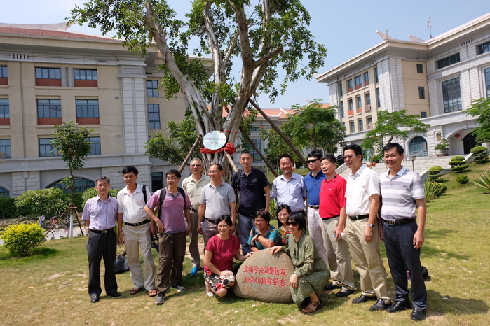 2018年7月22日,校友们前往翔安校区,在学院新大楼前进行树木捐植活动并合影留念。