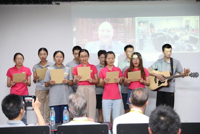 颁发仪式结束,吴良喆同学宣布了今年结业典礼的特殊环节暨闭幕节目——书院同学的大合唱。在吴良喆、欧非亚、吕雪靓三位同学演奏出的悠扬婉转的二胡琴声与细腻的吉他伴奏中,十位书院同学演唱了著名的苏格兰歌曲《Auld Lang Syne》(中文名:友谊地久天长),以此表达对书院的感激与不舍,歌颂书院成员的纯真友谊与书院的美好时光。《Auld Lang Syne》刚落,全体书院同学又为大家展示了由今年的拔尖班同学们自己编曲谱词的博伊特勒书院院歌《BI》,优美律动的旋律与押韵风趣的歌词述说着同学们书院生活的乐趣与收获,轻松愉快的氛围也让观众们不禁随着节拍打起了拍子。两首合唱将整个结业典礼推向了高潮。曲罢,全场爆发出热烈的掌声。