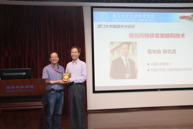 4月13日上午,中国科学院上海药物研究所蒋华良院士应邀为我院师生带来了一场题为“原创药物研发策略和技术”的南强学术讲座。林圣彩教授主持了本场讲座,并为蒋华良院士颁发了南强学术讲座纪念章。