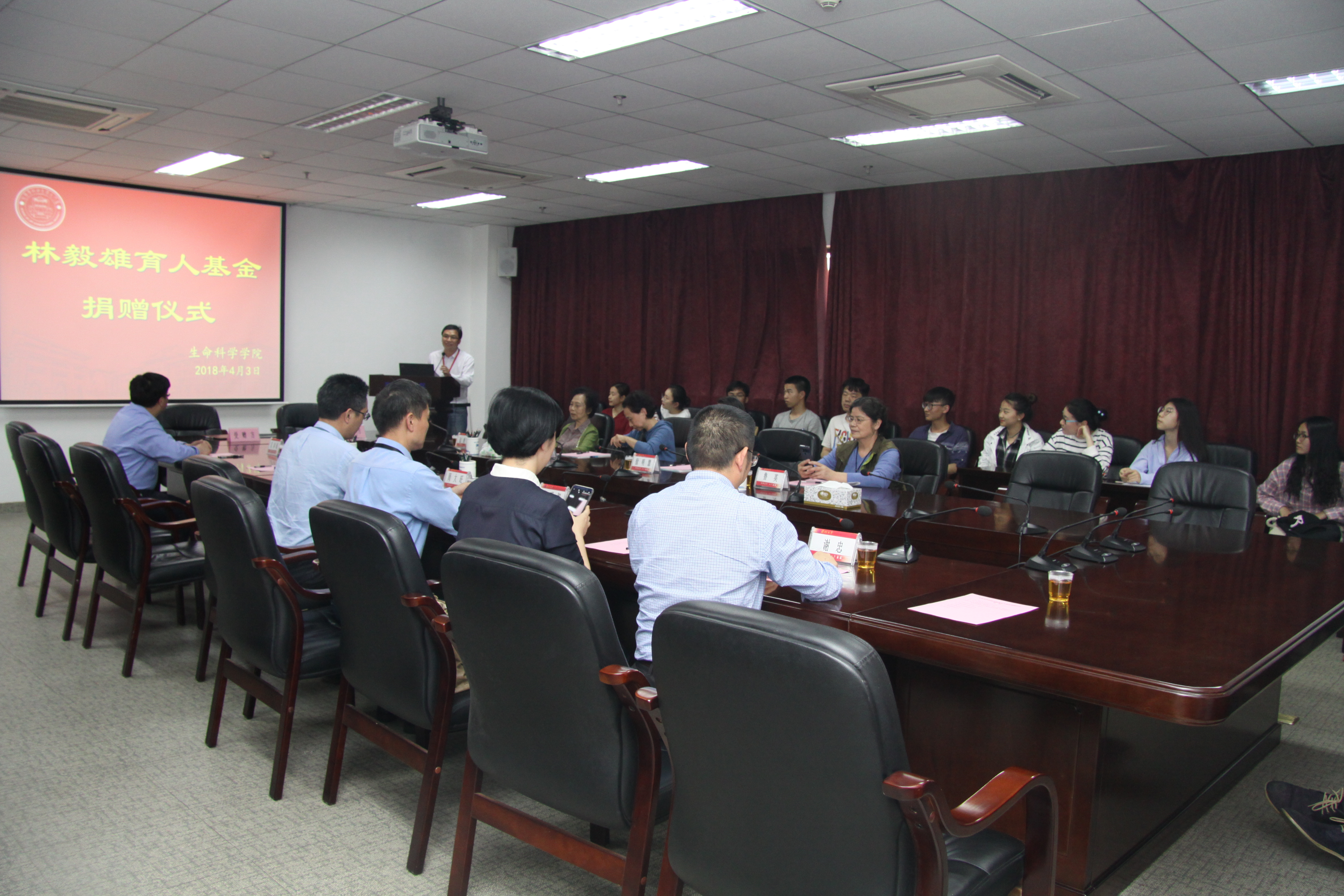4月3日下午,生命科学学院于黄朝阳楼403会议室举行了“林毅雄育人基金”捐赠仪式。厦门大学生物系植物专业1952级校友林毅雄教授的夫人徐明慧教授向学院捐赠人民币100万元设立“林毅雄育人基金”,支持学院人才培养。徐明慧教授的亲属鲁英女士、徐远萍女士、厦门大学教育发展基金会办公室副主任赵晓慧、52级同学代表学院退休教师张娆挺、学院党政领导及师生代表出席捐赠仪式,左正宏主持仪式。