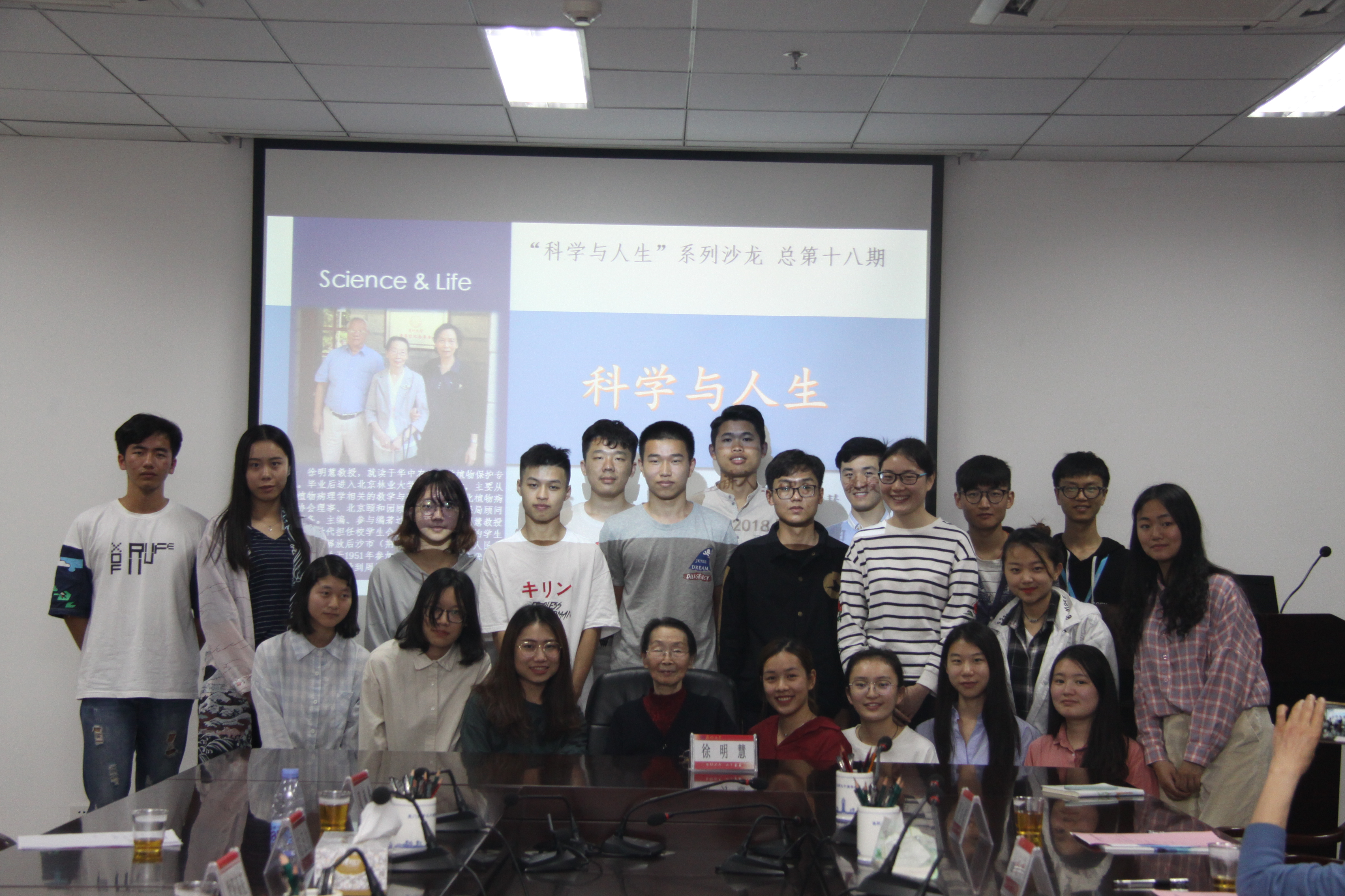仪式后,徐明慧教授继续做客《科学与人生》系列沙龙,在与同学们的亲切交谈中,她首先与同学们讲述了她与林毅雄教授投身科学的人生经历。然后用自己的故事传递给同学们在人生道路上一定要恒心、决心和感恩的心。最后,她还分享了1951年参加全国第十五届学生代表大会(学联),受到周恩来总理接见的趣闻。