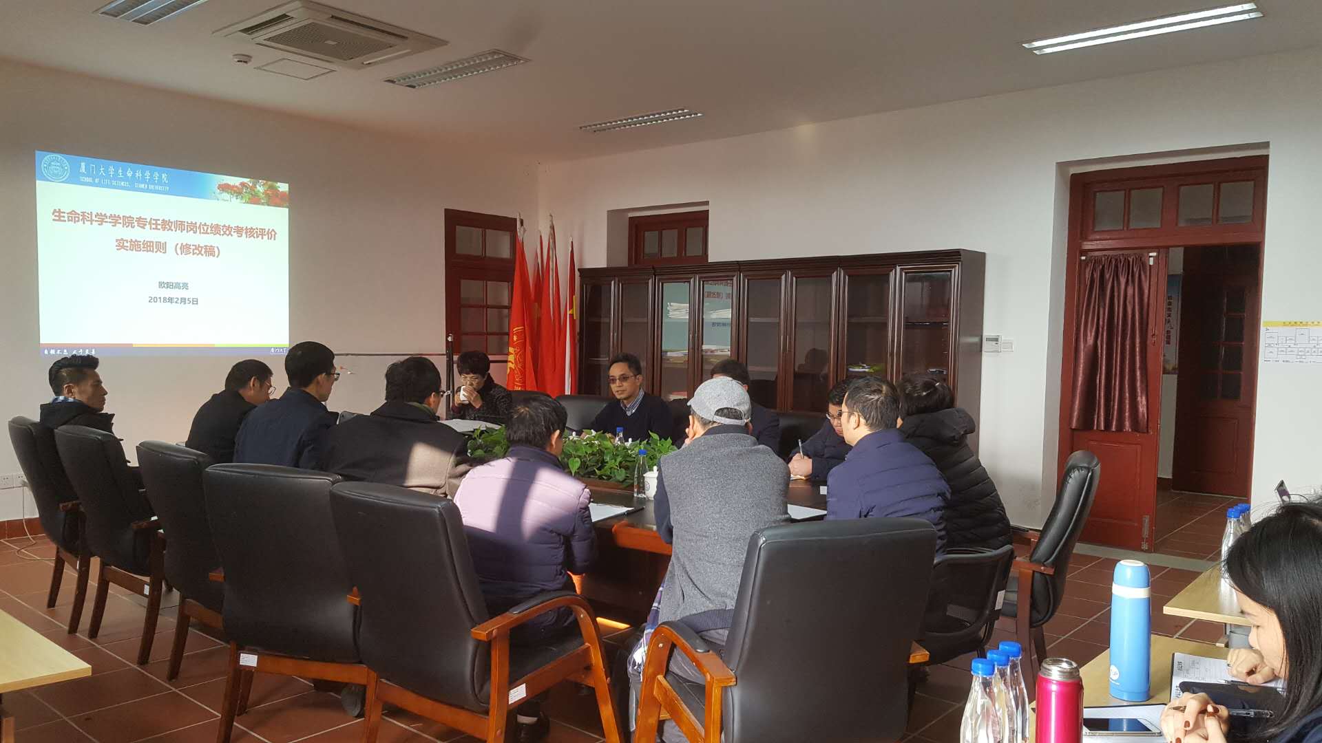 欧阳高亮副院长提交会议讨论了专任教师岗位绩效考核实施细则修订意见、介绍了学院目前教师队伍现状及人才队伍建设的未来工作设想,同时对生物学一级学科评估情况进行了详细分析,以期学院总结经验提早准备,争取在下一轮学科评估中取得优异成绩。