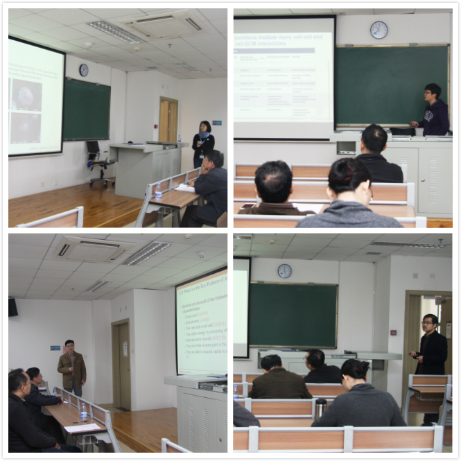 参加试讲的四位青年教师刘文贤、莫萍丽、张荧荧和钟传奇分别从《普通生物学》、《细胞生物学》、《生物化学》3门课程中选取了章节进行了30分钟的试讲。