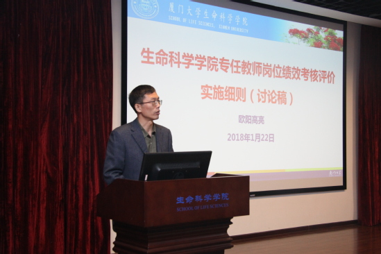 面向学院未来发展,他提出了几点要求:一是要全面贯彻落实党的十九大精神,找准生物学科的历史坐标和使命,朝着“双一流”目标奋勇前进;二是坚持党管人才,深化学院人事改革制度,形成术业有专攻的三支专业队伍;三是坚持“立德树人”,培养高素质的人才队伍,树立良好的学风院风;四是加强前瞻性,打造大平台,做成大科学,造就大成果;五是加强科研转化落地,进一步发挥学院的学科优势、人才优势,扩大学院影响力。