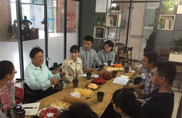 袁教授在简单的自我介绍之后,结合自身的感悟,讲述了他青年时期的求学生涯。袁教授生活的年代,正值高考制度刚刚恢复,高考之不易如同千军万马过独木桥。在这样的大时代背景下,袁教授凭借着过人的勤奋和坚定的信念,以优异的成绩考上了大学。回顾那段艰苦岁月,袁教授感慨良多,并以此激励大家:希望你们在今后的人生道路上,不畏艰难,勇往直前,最终方能取得成功。随后,袁教授谈起自己在法国的生活,他以一些鲜活的例子,展现了中法迥然不同的文化,让大家大开眼界。即使在法国,袁教授依然秉承自己刻苦努力的品质,在实验室的时间是其他研究员的两倍,再次受到在场同学们的由衷佩服。数十年如一日的研究,袁教授总结了科研之路上“心态”的重要性,他认为失败是成功之母,面对成功可以开心三天,面对失败就说一句“C'est La Vie”(法语,“生活”的意思)。在随后的提问环节中,袁教授提出了自己关于出国留学的看法:中国在生命科学领域的发展正处于上升阶段,不建议大家过早的出去留学。只有当自己的研究方向在国内难以获得相应条件时再选择出国。关于爱情观,袁教授坚持应是“先立业,后成家”,唯有成熟之时才能收获真正的爱情。大家围坐在袁教授身侧,谈理想提困惑,渐渐忘却了时间的流逝。在导师沙龙的最后,袁教授送给了在场同学们一句话:克服缺点比发扬优点更加重要!