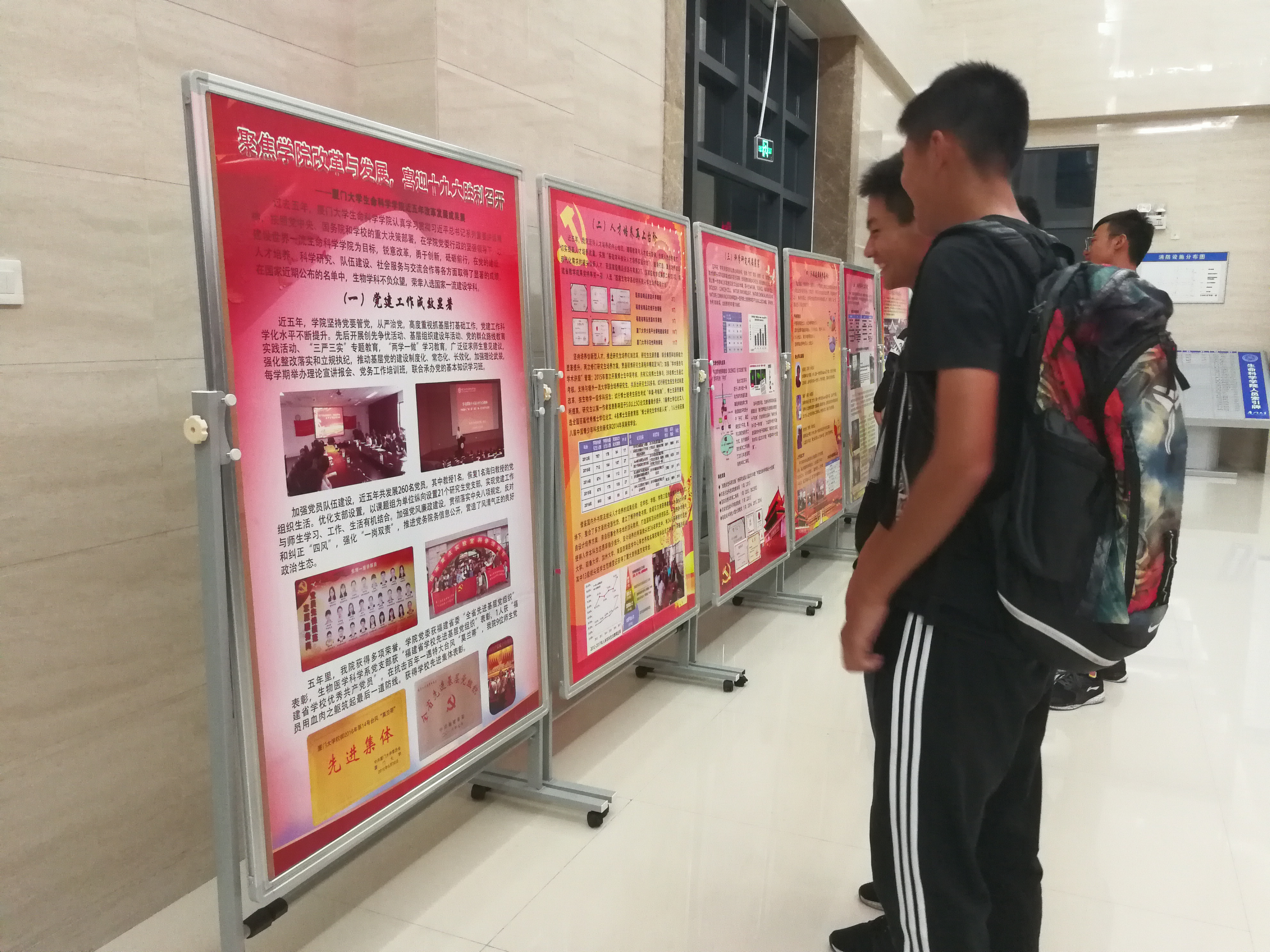 10月18日,举世瞩目的中国共产党第十九次全国代表大会将在北京召开,生命科学学院师生积极响应学校党委号召,以五年改革发展成果展、师生集体政治学习、组织户外运动锻炼、组织党员参观网上展馆、悬挂横幅宣传标语等形式热烈迎接党的十九大胜利召开,在全院上下营造了浓厚的喜迎盛会的氛围。