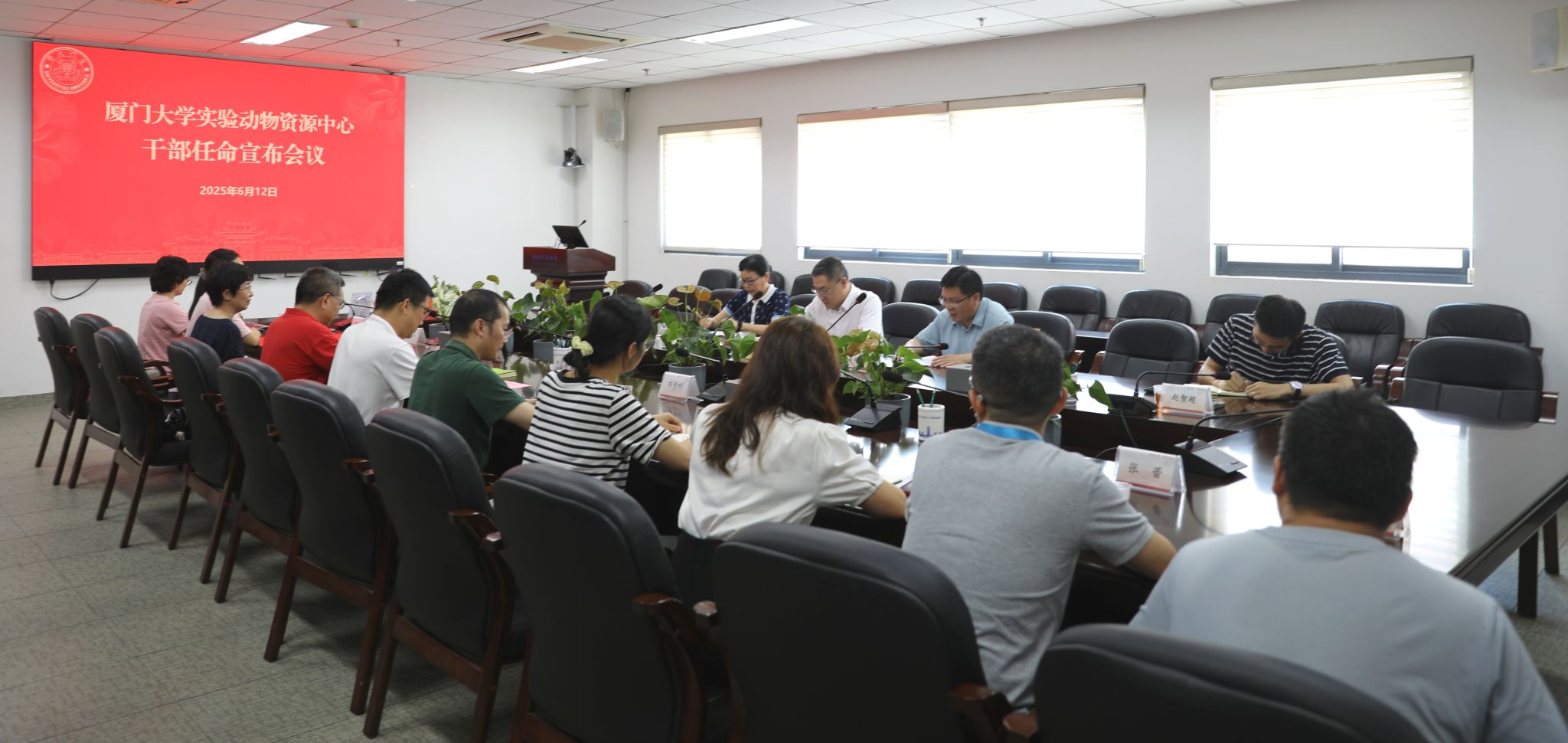 2025年6月12日,学校在翔安校区生命科学学院黄朝阳楼B403会议室召开厦门大学实验动物资源中心干部任命宣布会议。校党委常委、副校长方颖,党建办主任、组织部副部长葛郝锐出席会议。生命科学学院党委书记马进龙、院长邓贤明、实验动物中心副主任、学院“一办三中心”负责人、实验动物资源中心办公室主任、教职工代表等参加会议。会议由葛郝锐主持。
