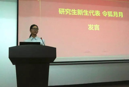 最后发言的是研究生新生代表令狐月月,她回顾了本科四年的厦大时光,为自己是一名厦大生科学子感到幸运与自豪;并愈发坚定了自己的科研梦,决心本着厦大四种精神勇敢的面对挑战,科研路上坚持不懈,争取为母校争光成为国家栋梁之才。她向新生们提出了几点建议,在接下来的大学生活中要静下心来,在自强不息中历练体格,健康身心全面发展;敢于质疑勇于创新,在未来收获蓦然回首灯火阑珊处的超越与惊喜。