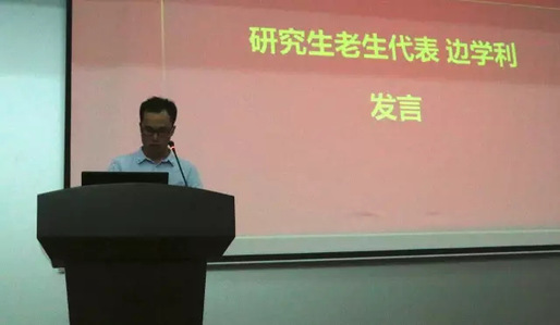 紧接着发言的是研究生老生代表边学利学长,他向大家分享了自己的科研经历与感受,并期望大家能够与同学导师多交流,吸收他人的经验,学会站在巨人的肩膀上做科研;并且强调了坚持的重要性,希望大家能够克服拖延,坚持不懈,发扬厦门大学自强不息,止于至善的校训,秉承生科人勇于探索的精神,勤奋好学追求真理,在接下来的日子里抓住机遇创造属于自己的一片蓝天。