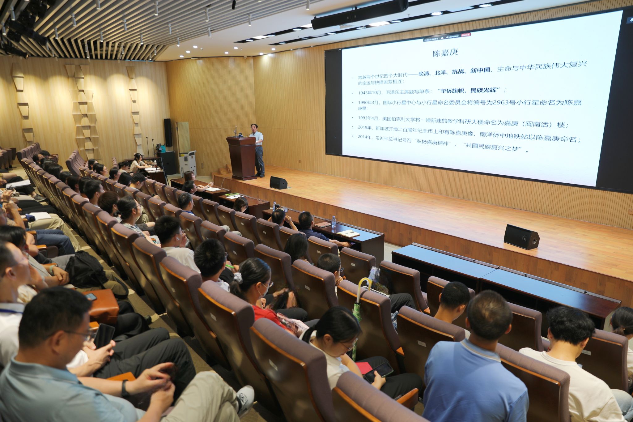 报告会上,朱水涌教授从“呕心民族复兴 奋发立国强国”“把握历史方向 心系‘国之大者’”“弘扬自强诚毅精神 奋进新的伟大征程”三个方面讲述了陈嘉庚先生胸怀大爱、赤诚报国的一生,深入解读了嘉庚精神丰富的时代内涵。朱教授动情感悟,陈嘉庚先生作为中华民族伟大复兴的一面华侨旗帜,是一百多年来伟大复兴波澜中的精卫,一百多年来勇担立国强国使命的愚公,从站起来、富起来到强起来征程上永远不灭的民族光辉,是新时代新征程必须发扬光大的精神力量。作为厦大师生的我们更要赓续传承嘉庚精神,心系“国之大者”,从中华民族的最高利益与人民幸福的根本利益出发,把握正确的历史航向,自强不息、止于至善,久久为功、善作善成。