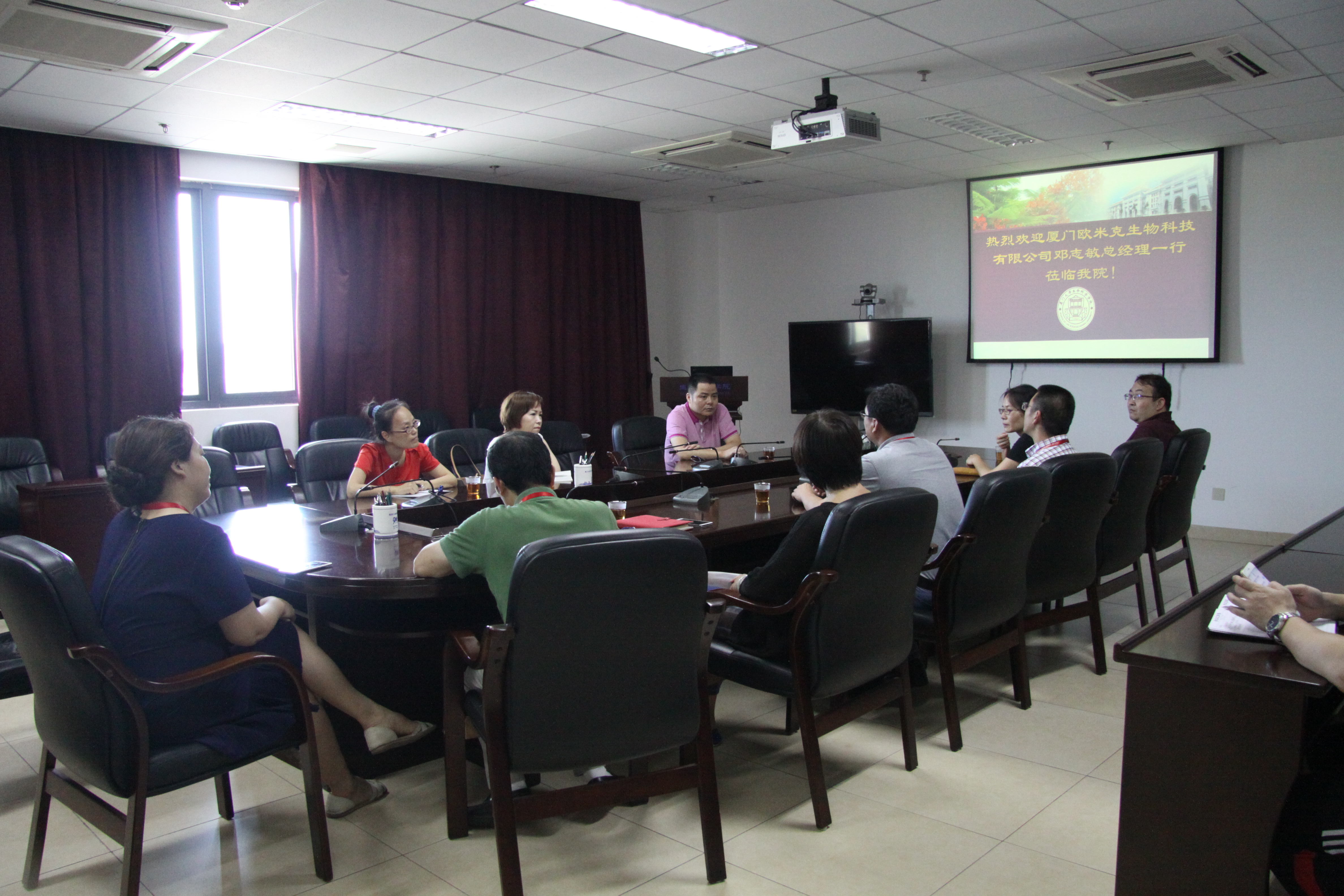 7月27日,厦门欧米克生物科技有限公司总经理邓志敏携生物实验室周丽琴高级工程师和赵希景研发工程师一行3人到我院座谈交流并签订合作协议。