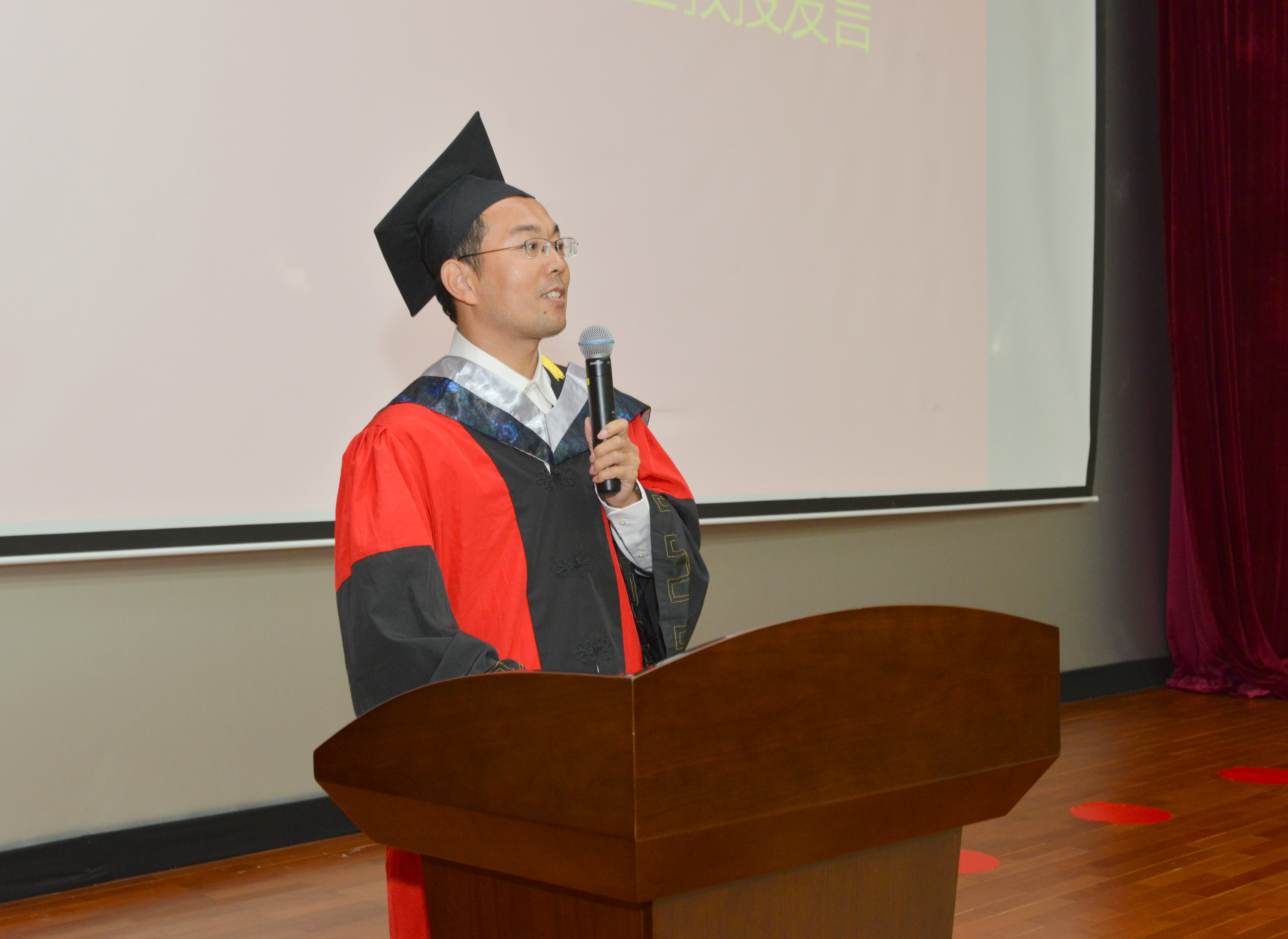 紧接着,赵同金教授作为教师代表上台发言,他亲切地问候同学们此时此刻的心情,除了对毕业生表示祝贺,还感谢他们给学校、给学院,灌输了新鲜的活力和价值,也希望他们能在以后的生活中多多尝试,不忘初心,继续前进,在将来取得更大的成绩。