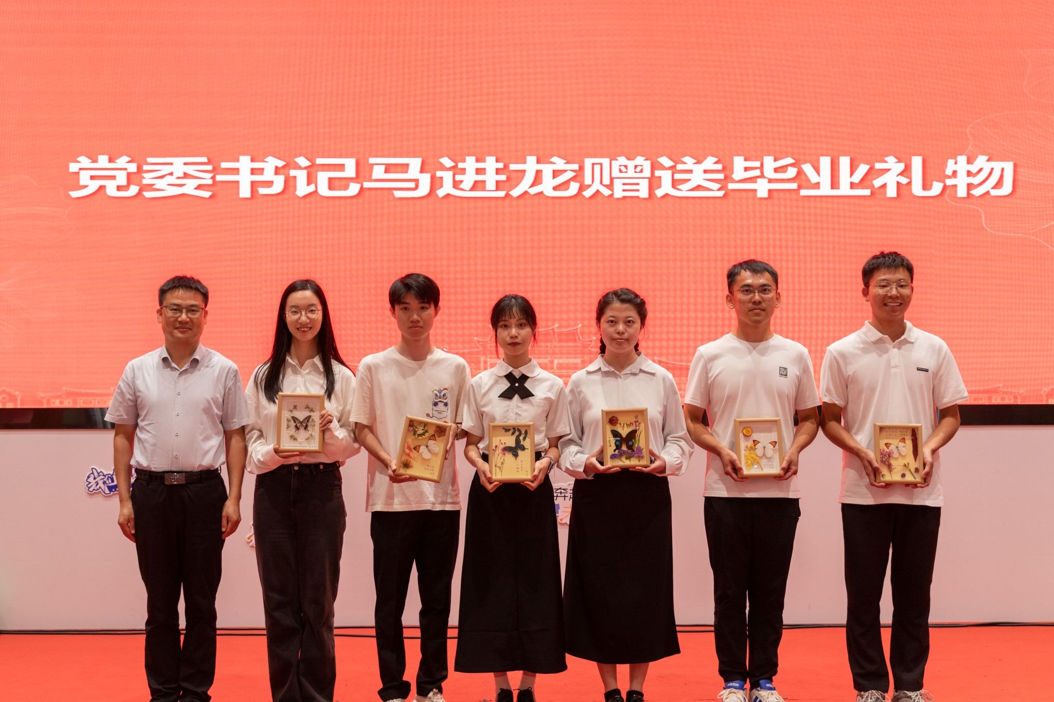 夏至已至,蝉鸣渐起。6月25日,生命科学学院毕业欢送会上,一场别具匠心的赠礼仪式温暖上演。学院党委书记马进龙将一份份饱含心意的蝴蝶标本,郑重送到2025届毕业生手中。这些由学院领导班子与2024级本科生携手制作的精美蝴蝶标本,不仅是劳动教育课程的丰硕实践成果,更见证了跨越年级的真挚情谊,寄托着学院师生对毕业生的美好期许与深切祝福。