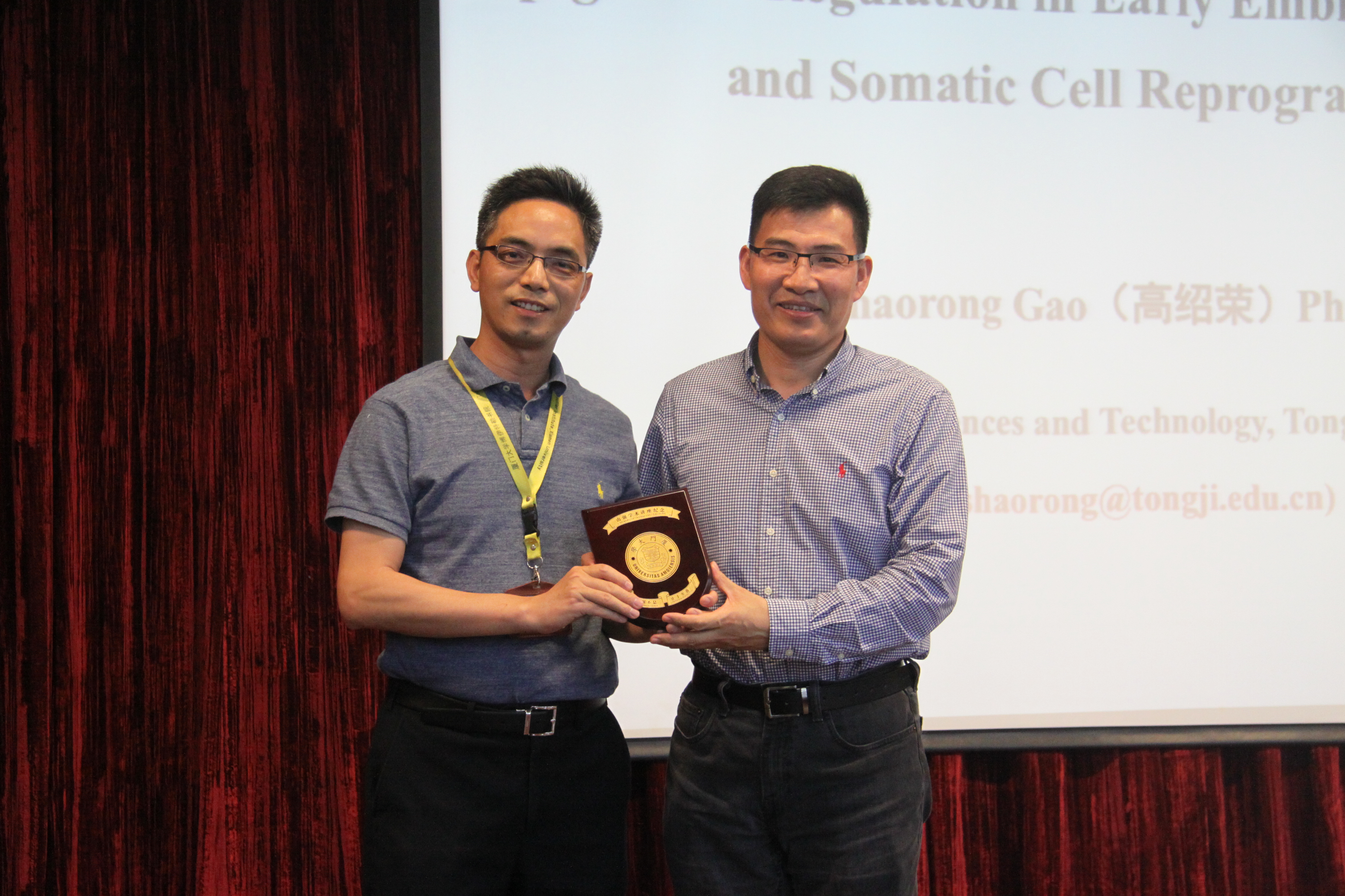 4月26日下午,受我院韩家淮教授、周大旺教授的邀请,同济大学生命科学与技术学院院长高绍荣教授在生命科学学院五楼学术报告厅为我院师生带来了一场题为“Epigenetic Regulation in Early Embryo Development and Somatic Cell Reprogramming”的南强学术讲座。周大旺教授主持了本场讲座,并为高绍荣教授颁发了南强学术讲座纪念章。