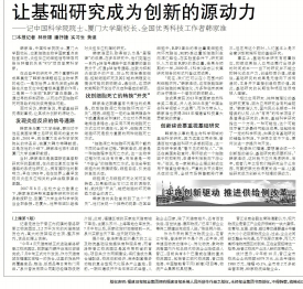 《福建日报》12月25日要闻版刊发长篇通讯“让基础研究成为创新的源动力——记中国科学院院士、厦门大学副校长、全国优秀科技工作者韩家淮。