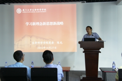 为深入开展学习宣传党中央治国理政新理念新思想新战略,10月27日下午,生命科学学院党委在黄朝阳楼E307报告厅召开理论宣讲报告会,学院党委书记陈光作题为《学习新理念新思想新战略》专题党课。