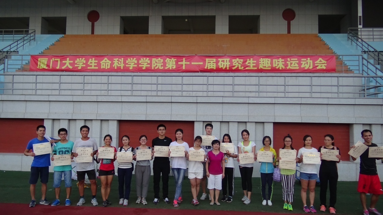 为了倡导大家在繁重的学习、实验之余重视体育锻炼,同时促进2016级研究生新生尽快熟悉班级,给同学们提供更多的交流机会,更好的融入班级、学院这个大家庭中,9月25日下午,我院在翔安校区田径场成功举办第十一届研究生趣味运动会。