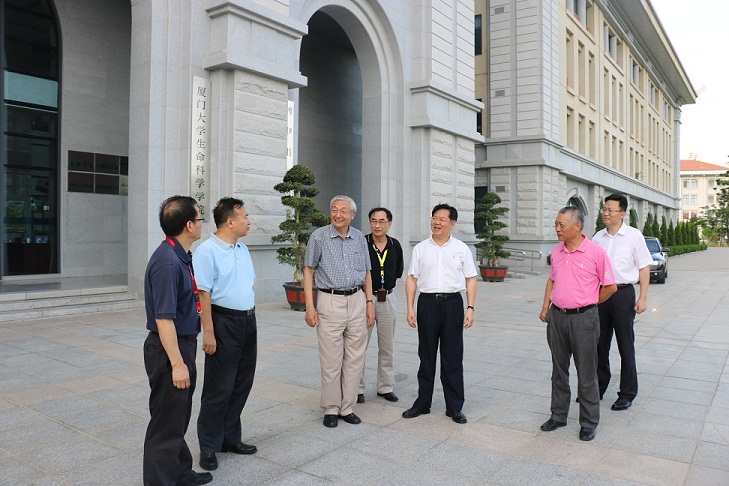 许智宏详细了解了我校各校区功能分布,来到翔安校区,了解校区总体建设和办学情况,参观了图书馆,并实地查看了校区的高尔夫球场、游泳馆等,对我校良好的校园环境和文化氛围表示赞赏。生命科学学院院长林圣彩陪同许智宏走访了生命科学学院和细胞应激生物学国家重点实验室。许智宏希望北京大学和厦门大学在医学与生命科学学科领域能有更多的交流与合作。