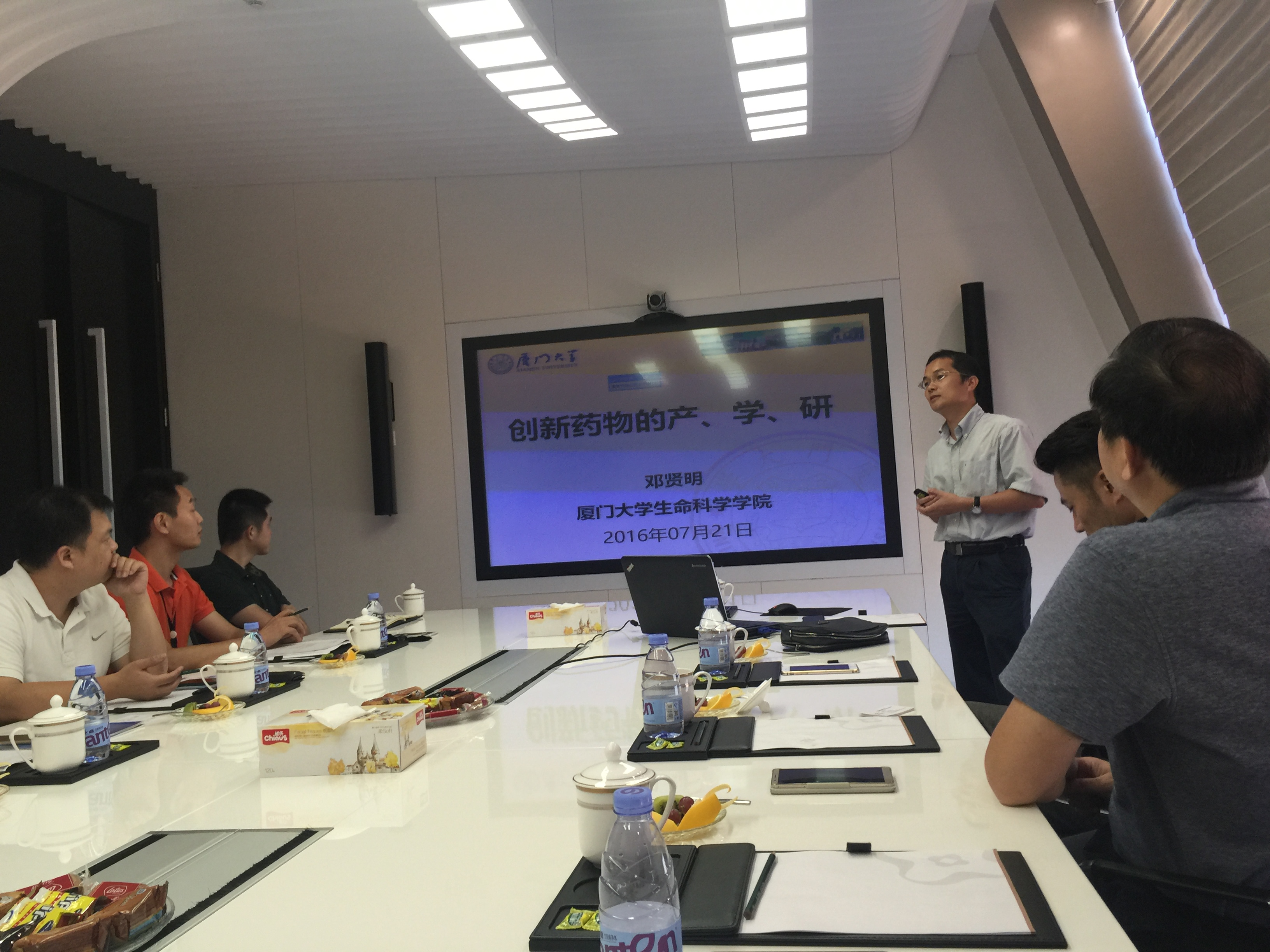 座谈会上邓贤明老师首先做了一场题为《创新药物的产、学、研》主题报告,详细介绍了目前国内外生物医药产业发展现状,生科院整体概况,目前创新药物的研究进展以及未来我院在这一领域的发展规划。党委副书记张伟老师向对方介绍了我院近几年学生体育和暑期社会实践开展情况及取得的优异成绩,希望在未来获得鸿星尔克集团的赞助支持。