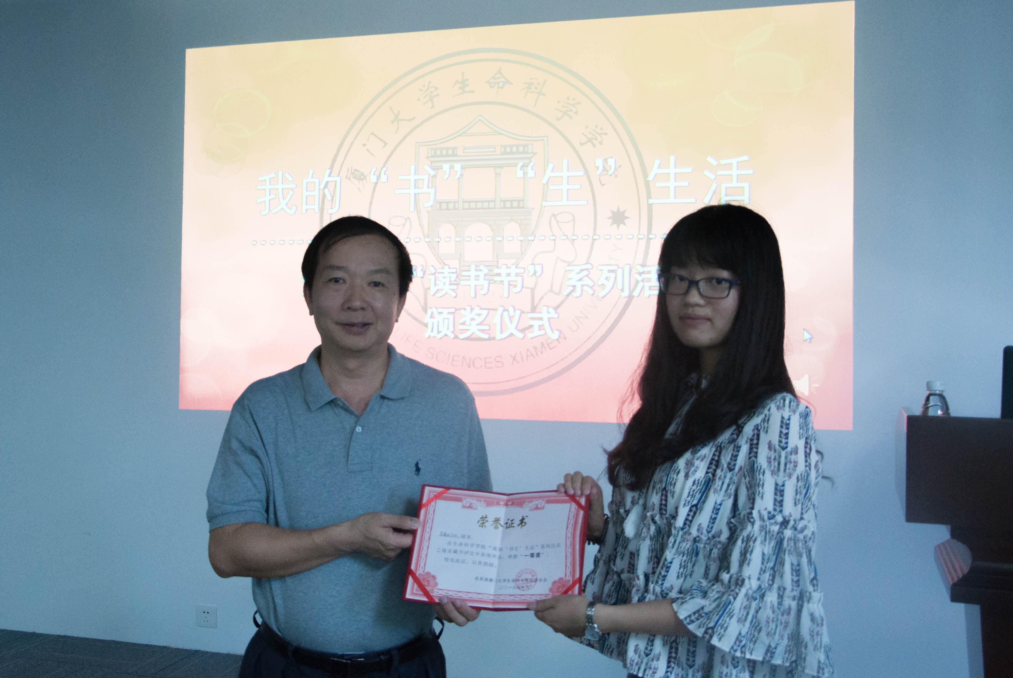 7月20日中午,“我的‘书’‘生’生活”读书节系列活动总结表彰大会在E307报告厅举行。学院党委书记陈光老师、党委副书记张伟、左正宏老师,团委辅导员等作为嘉宾到场。大会由本科生高怡曦主持。