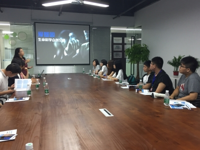 爱基因生命科学众创空间副总裁邹湘湘女士带领师生们参观了实验室、办公室,并详细介绍了爱基因众创空间的战略定位、运营模式、发展规划等,同时详细介绍了目前空间建设和项目进展情况。