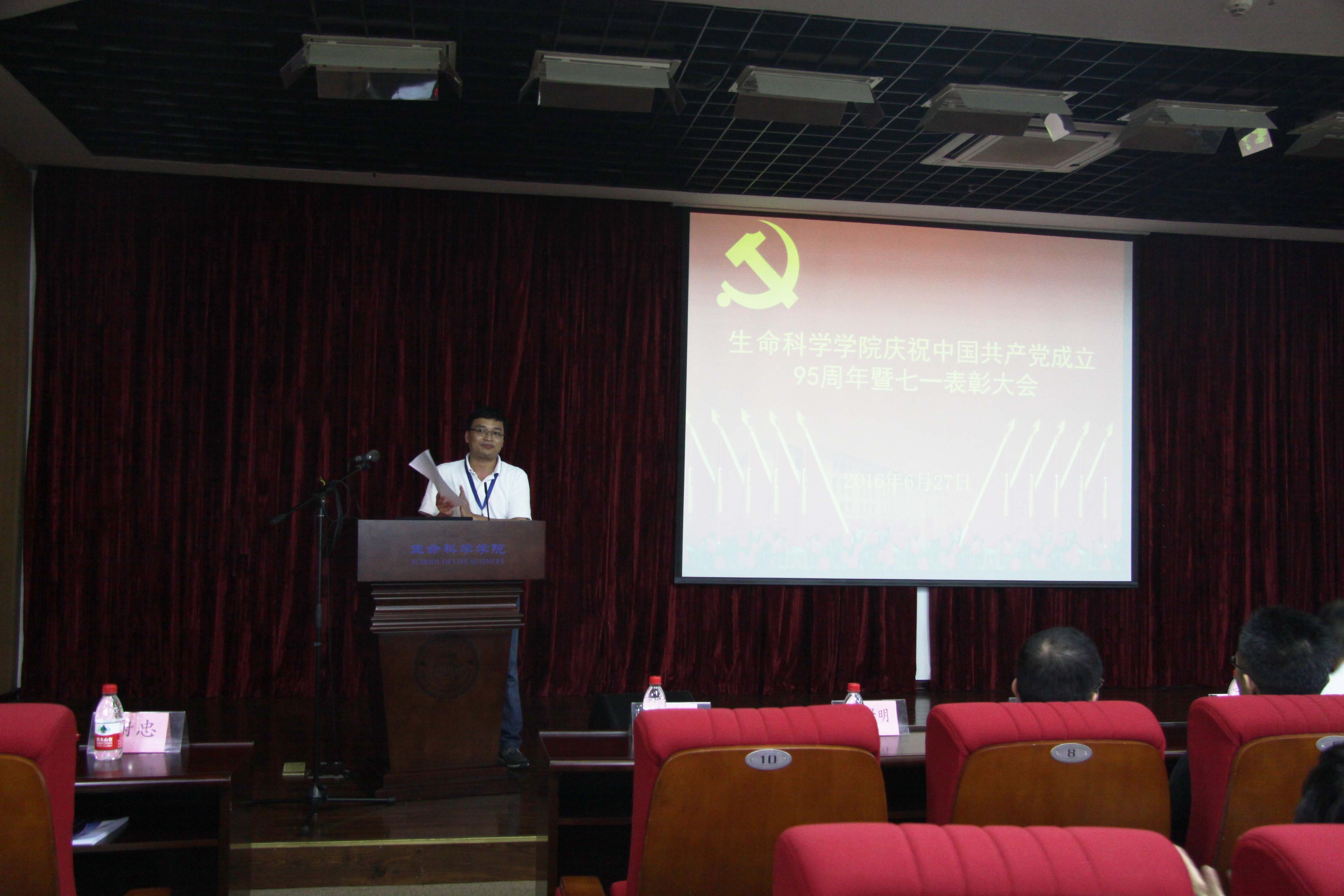 值此中国共产党成立95周年之际,6月27日中午,生命科学学院党委在黄朝阳楼五楼学术报告厅举行了庆祝中国共产党成立95周年暨七一表彰大会。学院党委委员,党支部书记、委员,党务秘书、辅导员,受表彰的先进集体代表、优秀党员、优秀党务工作者,入党积极分子共197人参加了大会。大会由学院党委副书记左正宏主持。