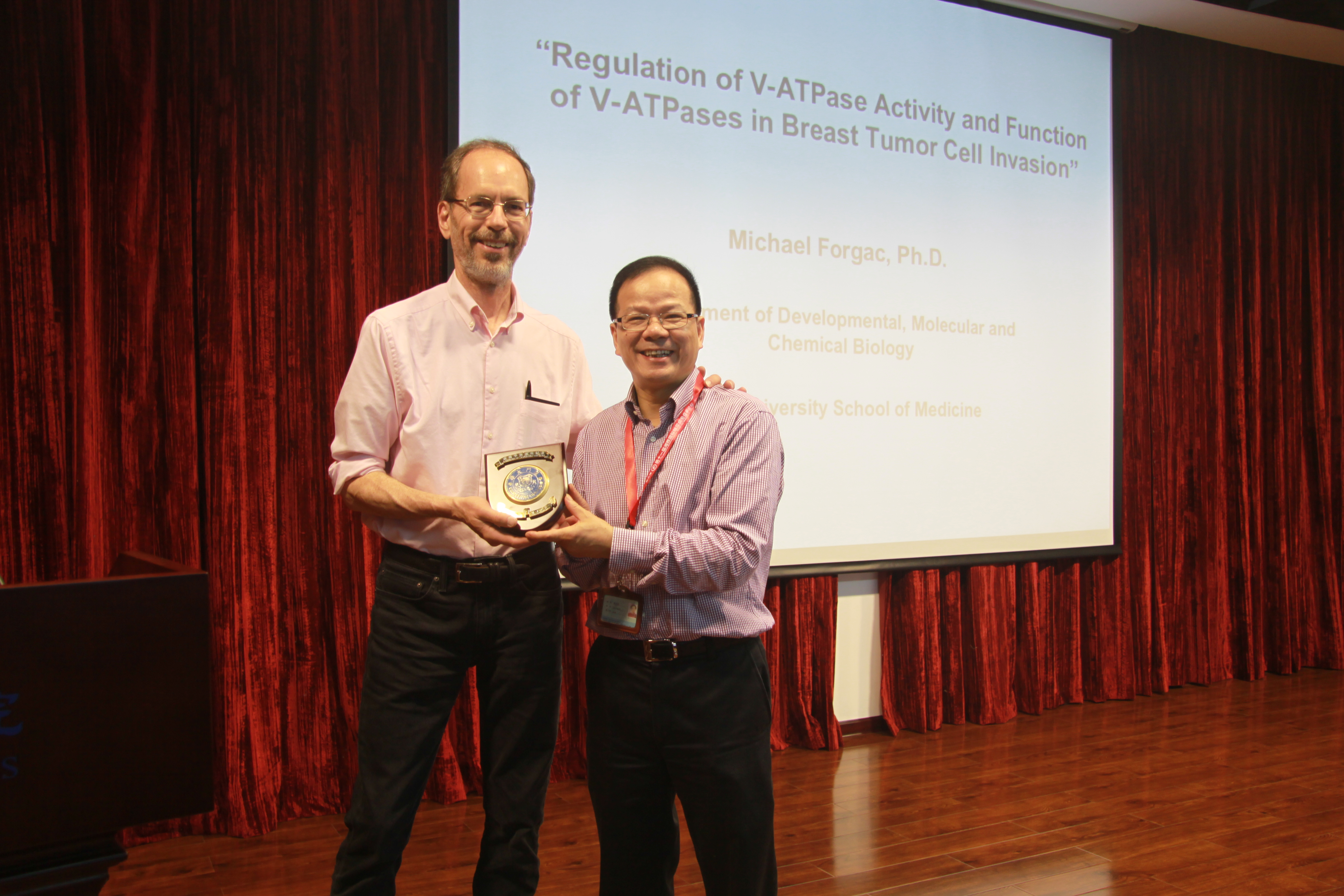 5月5日下午,塔夫斯大学Michael D. Forgac教授在生命科学学院五楼学术报告厅,为全校师生带来了一场主题为“Regulation of V-ATPase Assembly and Function of V-ATPases in Tumor Cell Invasion”的南强学术讲座。本次南强讲座由生命科学学院院长林圣彩教授主持。林圣彩教授对Michael D. Forgac教授的到访表示热烈欢迎,并为其颁发了南强学术讲座纪念牌。