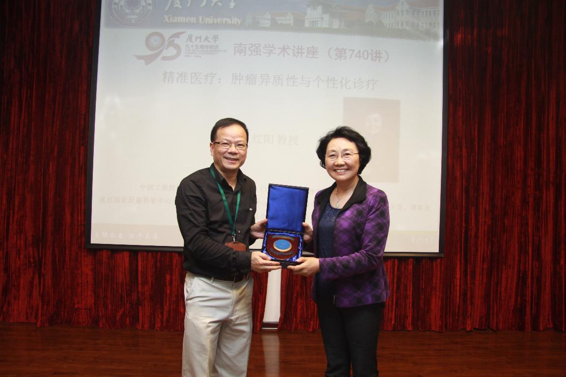 4月8日下午,中国工程院院士、国家肝癌科学中心主任、第二军医大学肝病中心主任、国际合作生物信号转导研究中心主任、上海东方肝胆外科研究所常务副所长王红阳教授在生命科学学院五楼学术报告厅,为我校师生带来了一场主题为“精准医疗:肿瘤异质性与个性化诊疗”的南强学术讲座。生命科学学院副院长李博安教授主持了本场讲座,院长林圣彩教授为王红阳教授颁发了南强讲座纪念章。