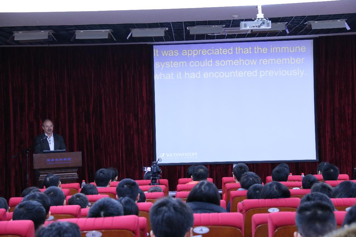 2月24日下午,博伊特勒书院系列课程之《Immunity in Perspective--现代免疫学展望》在生命科学学院五楼学术报告厅成功开课。主讲人为2011年度诺贝尔生理学或医学奖得主,美国德克萨斯大学宿主防御遗传学中心主任布鲁斯•博伊特勒教授。中国科学院院士、厦门大学副校长、博伊特勒书院院长韩家淮教授,翔安校区来自不同学院的师生参加了此次课程。