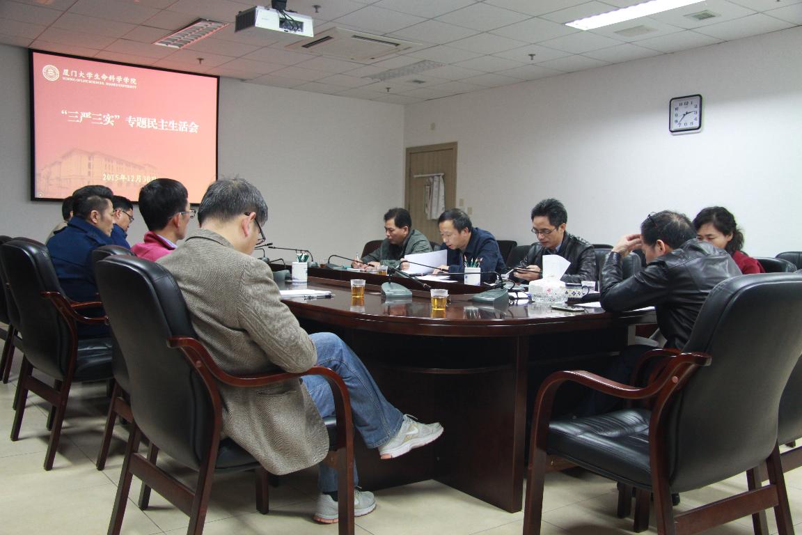 根据校党委统一部署,并经校第二督查组同意,12月30日下午,生命科学学院党委在黄朝阳楼B308会议室召开“三严三实”专题民主生活会。校第二督查组成员林金宝莅会指导,学院(含实验动物中心)党政领导班子成员参加会议,系主任、部门工会主席列席会议。会议由学院党委书记陈光主持。