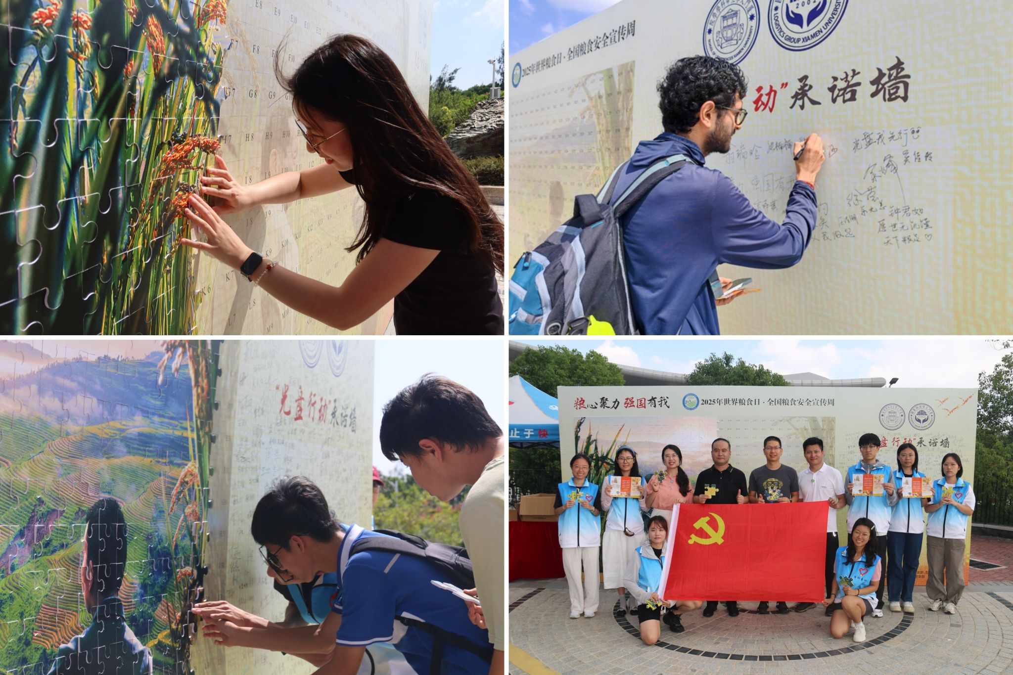拼图一侧还设有“光盘行动”承诺墙,师生们在此郑重写下节约粮食的承诺。有同学写道:“希望大家都能吃饱饭,不浪费粮食,愿天下再无饿殍。”真挚的语句,传递出青年一代对守护国家粮食安全最郑重的承诺。