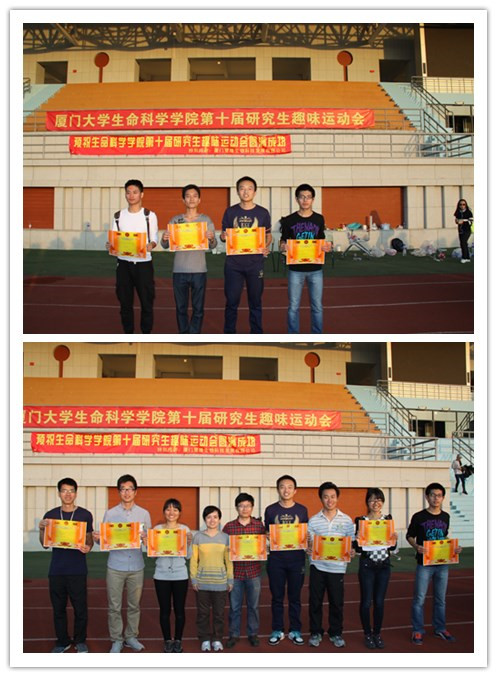 在经过紧张激烈的角逐后,最终生物化学1班与生物医学3班联合队、工程中心1班、植物学2班获得团体总分前三名。比赛还评选出各个单项的前三名,由学院团委副书记刘静为各获奖班级颁奖。在各班级的积极参与下,本届趣味运动会顺利闭幕。在赛场上,同学们意气风发,充分展现了生科学子昂扬向上的精神风貌。各项活动内容丰富、形式多样,成为落实“三走”活动的重要载体,进一步丰富了校园文化生活,促进了同学们的身心健康发展,提高了研究生各班级的凝聚力。