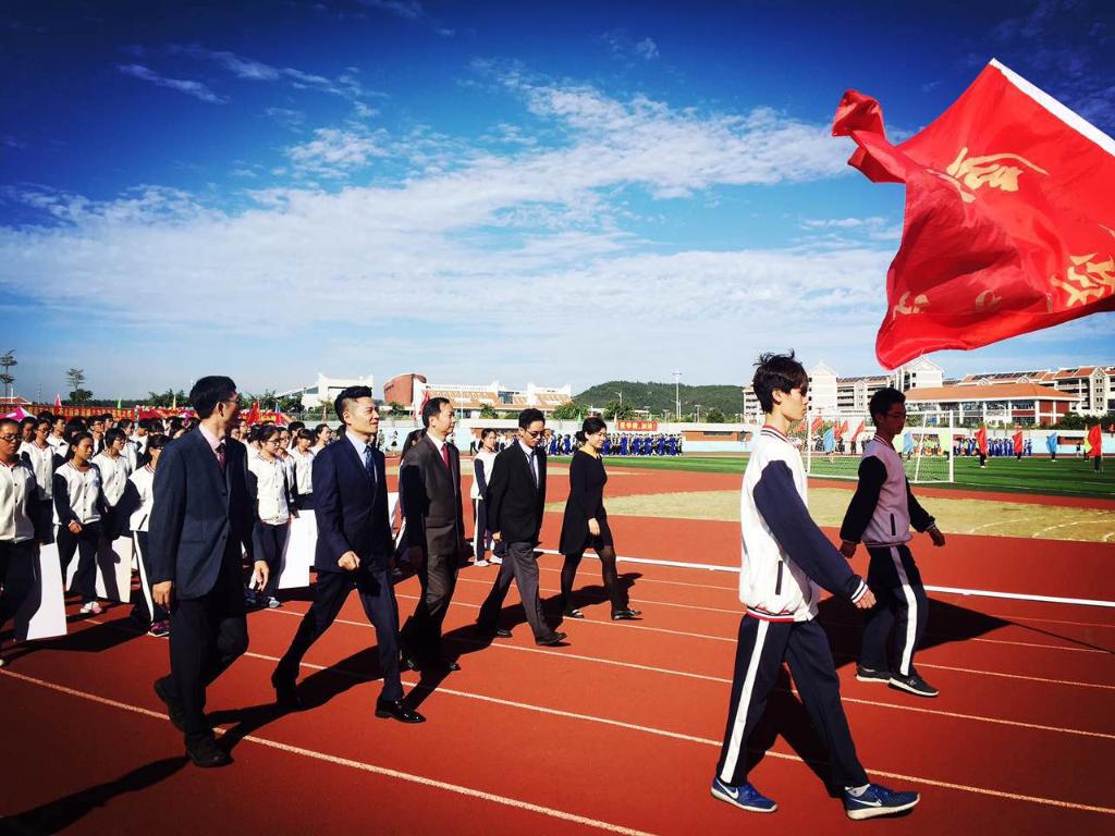 2015年11月6日上午,我校第五十届学生田径运动会开幕式在翔安校区举行。上午八时三十分,入场式正式开始,鲜花队、彩旗队以及各院代表队依次入场。其中,由学院党委陈光书记、周大旺、李博安、欧阳高亮副院长、张伟副书记等老师领衔的生命科学学院代表队以独特的DNA双螺旋结构阵式吸引了全场观众的目光,生动展示了生科人勇攀科学高峰,创新进取的精神风貌。其口号响亮,队列配合默契,主席台上的学院啦啦队也积极呼应,顿时点燃了全场观众的热情,场内外响起了热烈的掌声、欢呼声。
