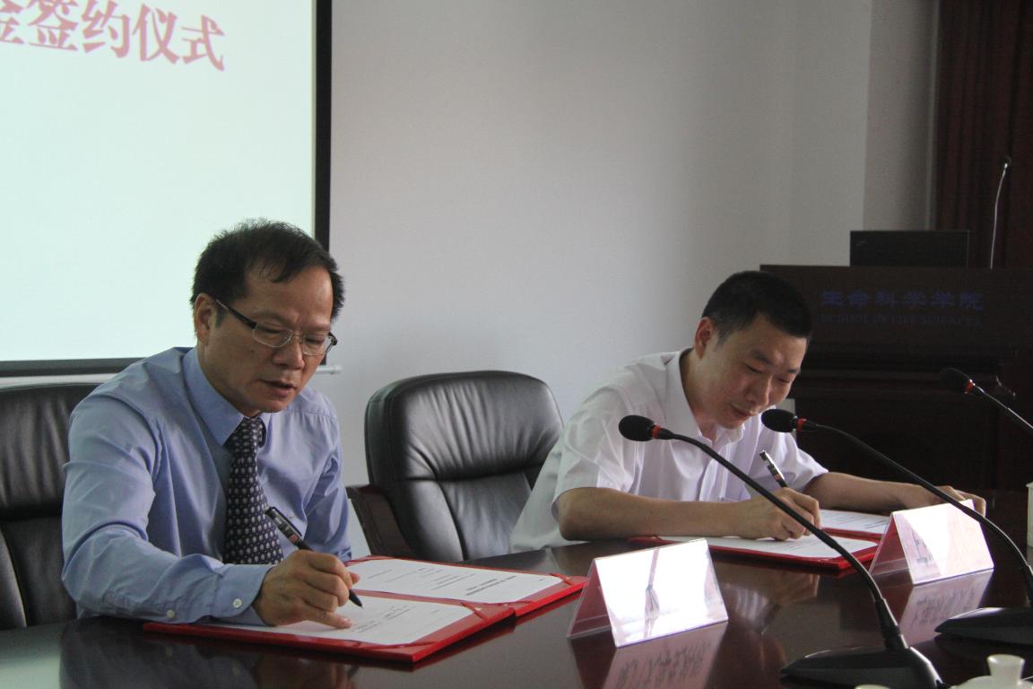 汇报结束后,林圣彩院长与郑仲征总裁分别代表本单位签订共建“厦门大学生科院-荻硕贝肯免疫遗传学临床转化中心”补充协议,左正宏副书记与邢宽副总裁作为双方代表签订荻硕贝肯HLA助学金捐助协议。双方就今后的合作展开了热烈讨论。