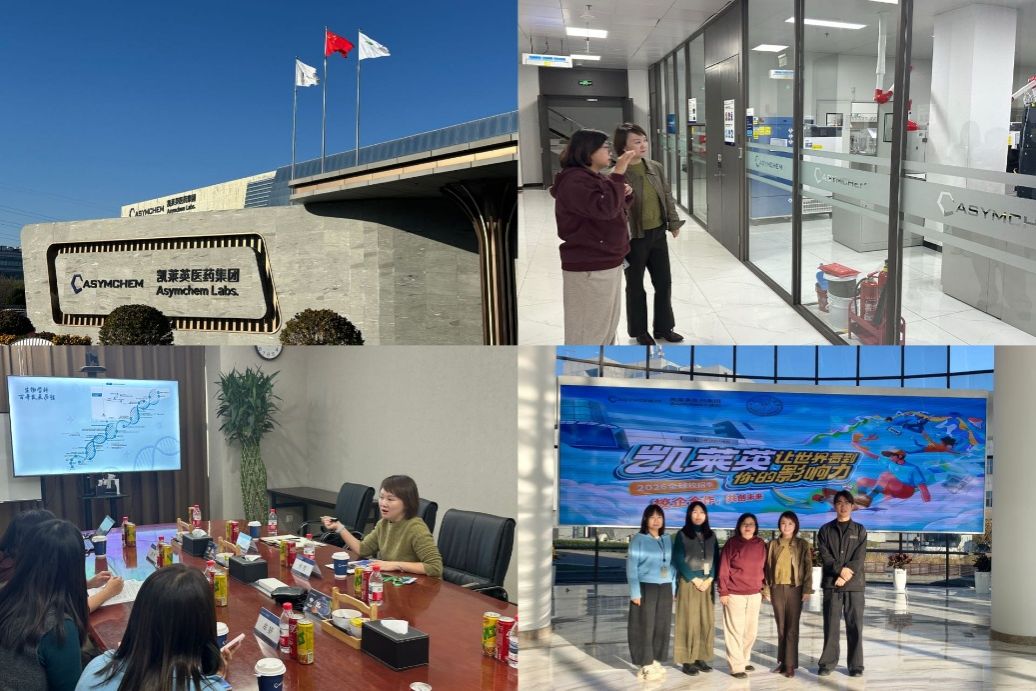 当日下午,行程收官于全球领先的CDMO企业凯莱英医药集团。一行人参观文化墙、实验室及生产车间,了解企业小分子领域优势与CDMO核心能力。公司人力经理魏然等与学院围绕学生项目实践机会供给、应用型高层次人才联合培养模式深入交流。