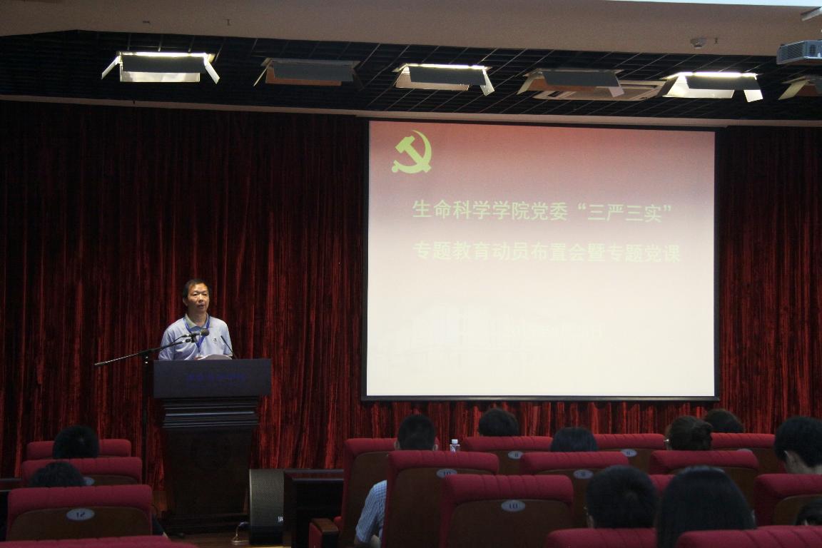 6月25日上午,生命科学学院党委召开“三严三实”专题教育动员布置会,学院党委书记陈光在会上作动员布置并讲授专题党课。生命科学学院、实验动物中心全体教职工党员,学生党支部书记、党支部委员参加了大会。
