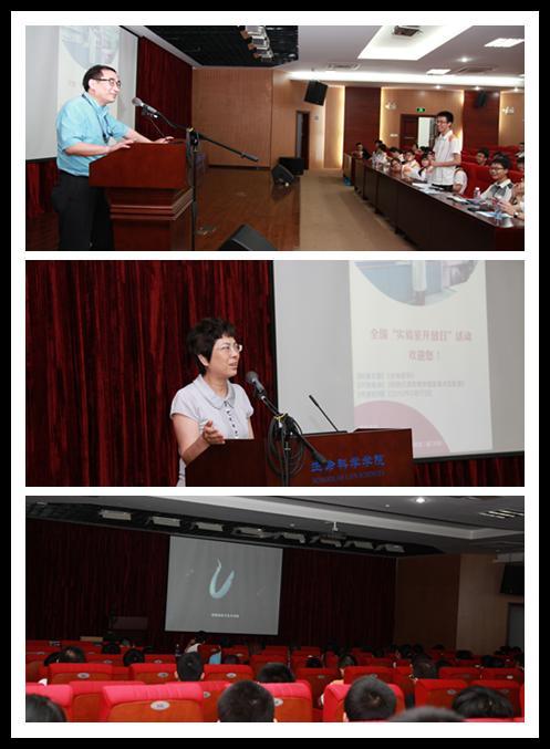 在学院五楼报告厅,细胞应激生物学国家重点实验室主任、中国科学院院士韩家淮教授做了简短的讲话,并一一解答了同学们的问题,分享了自己的想法和经验。随后,参观者观看了《文昌鱼》科普记录电影,科教结合,让同学们更进一步了解和认识了文昌鱼。最后,细胞应激生物学国家重点实验室副主任吴乔教授作总结致辞,为首届“全国实验室开放日”活动画上了完美的句号。