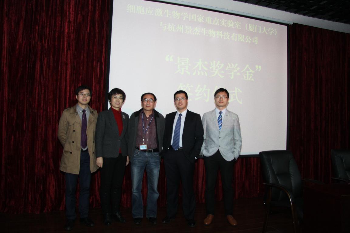 报告会后,举行了“景杰奖学金”协议签约仪式。程仲毅博士、厦门大学细胞应激生物学国家重点实验室主任韩家淮教授以及学院部分党政领导出席了签约仪式。仪式由厦门大学细胞应激生物学国家重点实验室副主任吴乔教授主持。