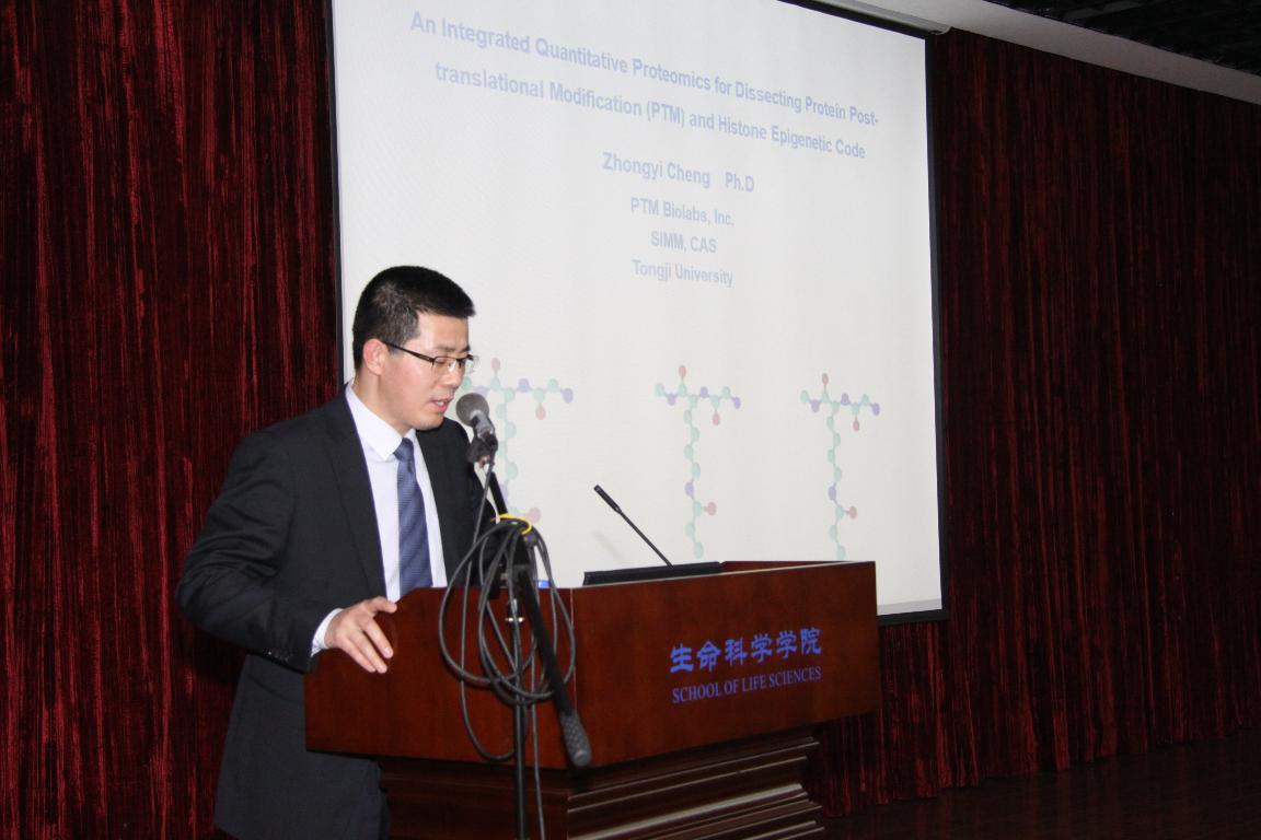 3月26日下午,杭州景杰生物科技有限公司首席执行官与首席技术专家程仲毅博士为全院师生献上了一场题为《An Integrated Quantitative Proteomics Strategy for Dissecting Protein Post-translational Modification (PTM) and Histone Epigenetic Code》的精彩学术报告。