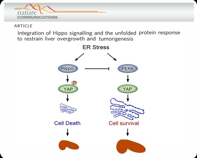 2月19日,周大旺教授课题组在Nature子刊《Nature Communications》上在线发表了题为“Integration of Hippo signaling and the unfolded protein response to restrain liver overgrowth and tumorigenesis”的研究论文,揭开了肝脏大小调控的神秘面纱-内质网的大小决定肝脏尺寸。