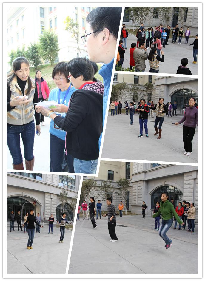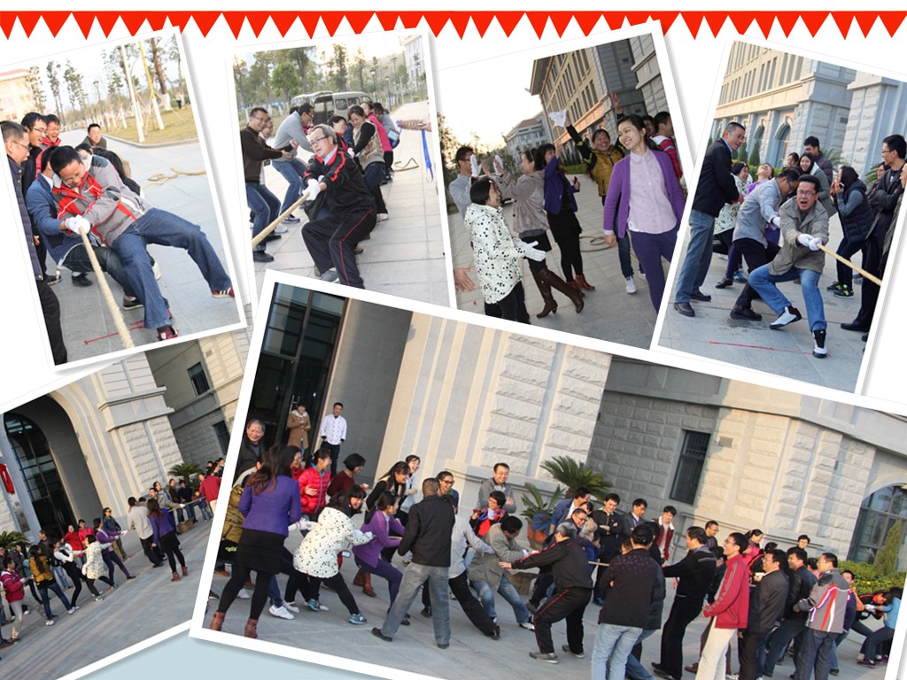 最后压轴的是拔河比赛,前两项比赛完成后全院教职工都集合到挂着火红中国结的学院大门口,摩拳擦掌准备拔河。拔河比赛每个工会小组上场女生4名、男生4名。比赛一开始,呐喊声、加油声此起彼伏,正在拔河的两个队伍更是感受到团结的力量,“一二三”,大家互相鼓励卯足了劲不服输,心往一处想,劲往一处使。经过激烈的角逐行政工会小组获得拔河冠军,生化与生物技术系工会小组屈居亚军。不论输赢每个人脸上都洋溢着笑容,欢声笑语映着余晖撒满了黄朝阳楼。