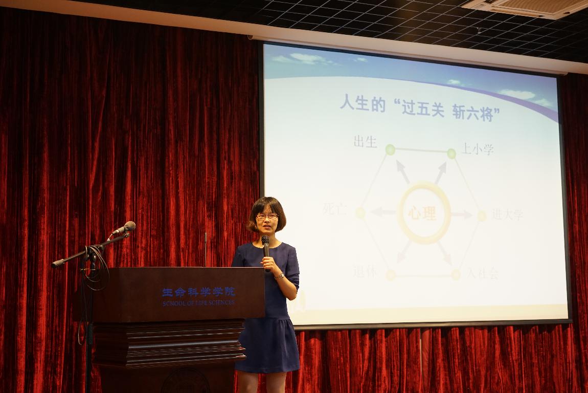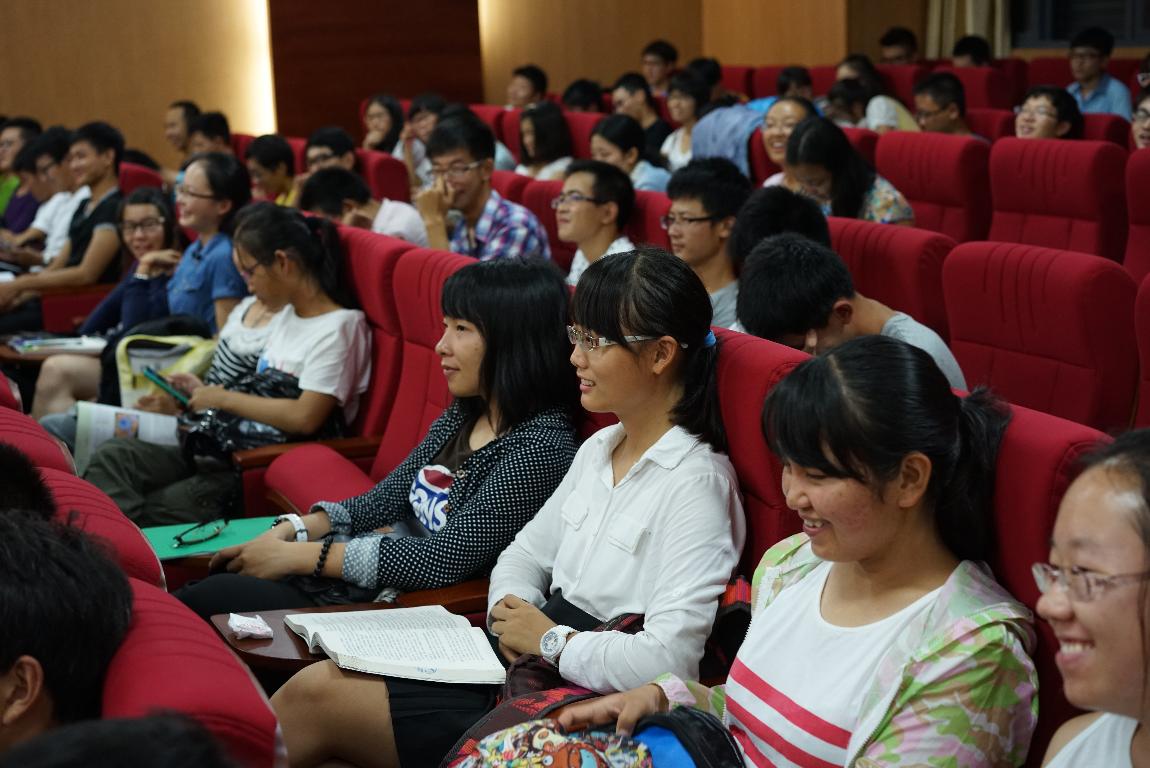 在“如何过好大学生活”这一环节,赖老师以大学必须要做的五件事:学习,恋爱,学生工作,培养友谊,社会实践为引子,以做游戏的方式消除了大家的羞涩和紧张,同学们开始畅所欲言,纷纷谈及自己来大学之后的感受,比如,有些同学认为普通生物学的全英课本太难,有些同学渴望谈一场恋爱,有些同学希望得到如何合理安排时间的指导等等。赖老师并没有直接给出同学们建议,而是引导同学们积极去面对,发挥自己的主观能动性去解决问题,她鼓励同学们在迷茫时要积极寻求心理疏导,并说,或许心理咨询不能直接给出你们生活中所有困惑的答案,但是可以让你们更加勇敢地去拥抱生活。