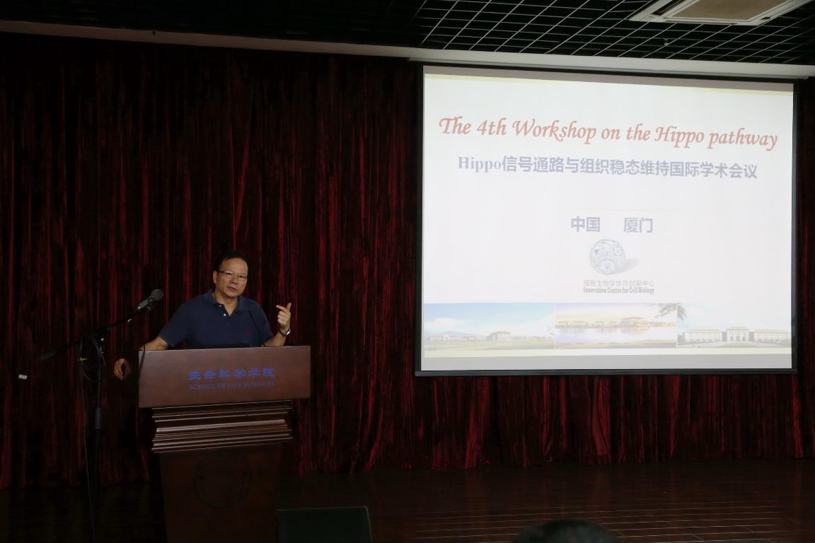 11月1日,由细胞生物学协同创新中心主办的Hippo信号通路与组织稳态维持国际学术会议暨第四届中国Hippo创新协作研究协会交流年会在厦门大学生命科学学院学术报告厅隆重召开。本次会议邀请到包括美国约翰霍普金斯大学潘多加教授、哈佛大学杨英姿教授、新加坡国立大学Marius Sudol教授和洪万进教授等多位Hippo领域的国际知名专家学者及包括中科大生命科学学院田志刚院长、浙江大学生命科学研究院冯新华院长、国家杰出青年科学基金获得者陈策实、季红斌研究员、多位优秀青年科学基金获得者等近30位国内知名专家学者及其研究团队共70余人参会。