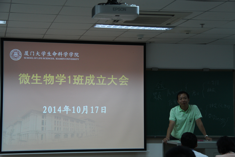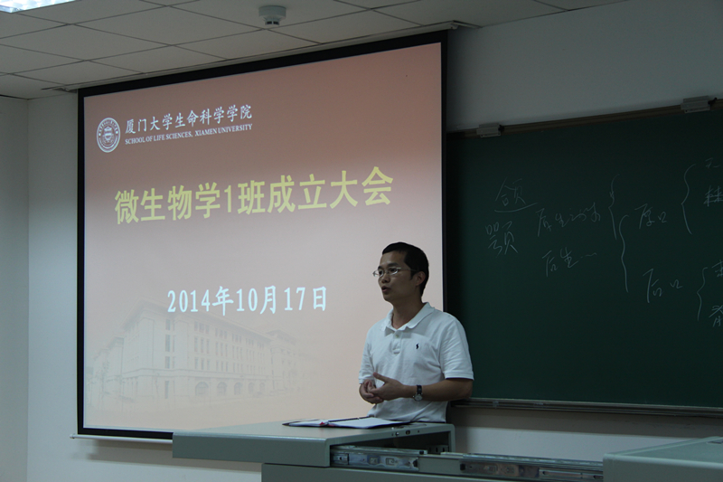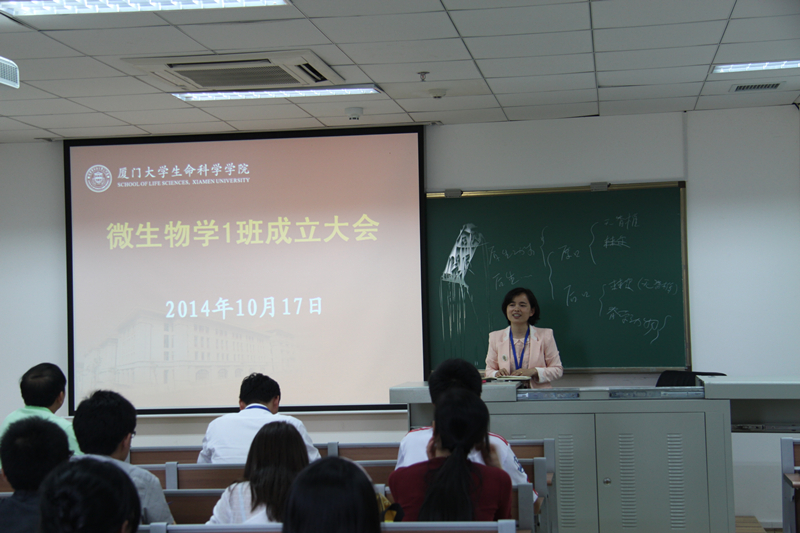 10月17日13:30,厦门大学生命科学学院微生物学1班成立大会在黄朝阳楼E207举行。出席此次会议的有我院党委书记陈光、副书记左正宏,团委副书记刘静、辅导员吴佳蓓,微生物药物课题组邓贤明、张莲茹、徐庆妍、胡志钰和吴莹莹等5位老师,以及微生物学1班的全体研究生。此次大会由刘静老师主持。