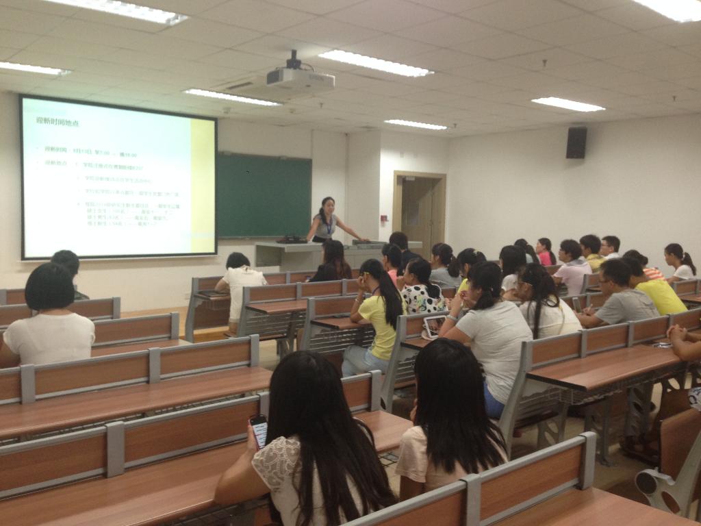 为确保高质高效完成我院2014级研究生迎新各项任务,学院于9月11日下午三点在黄朝阳楼E207召开了迎新志愿者培训大会。学院团委书记毛毛老师、团委副书记刘静老师、研究生教学秘书邹益珍老师、院办相关老师及辅导员、研究生会主要干部以及全体迎新志愿者参加了会议。会议由吴佳蓓老师主持。